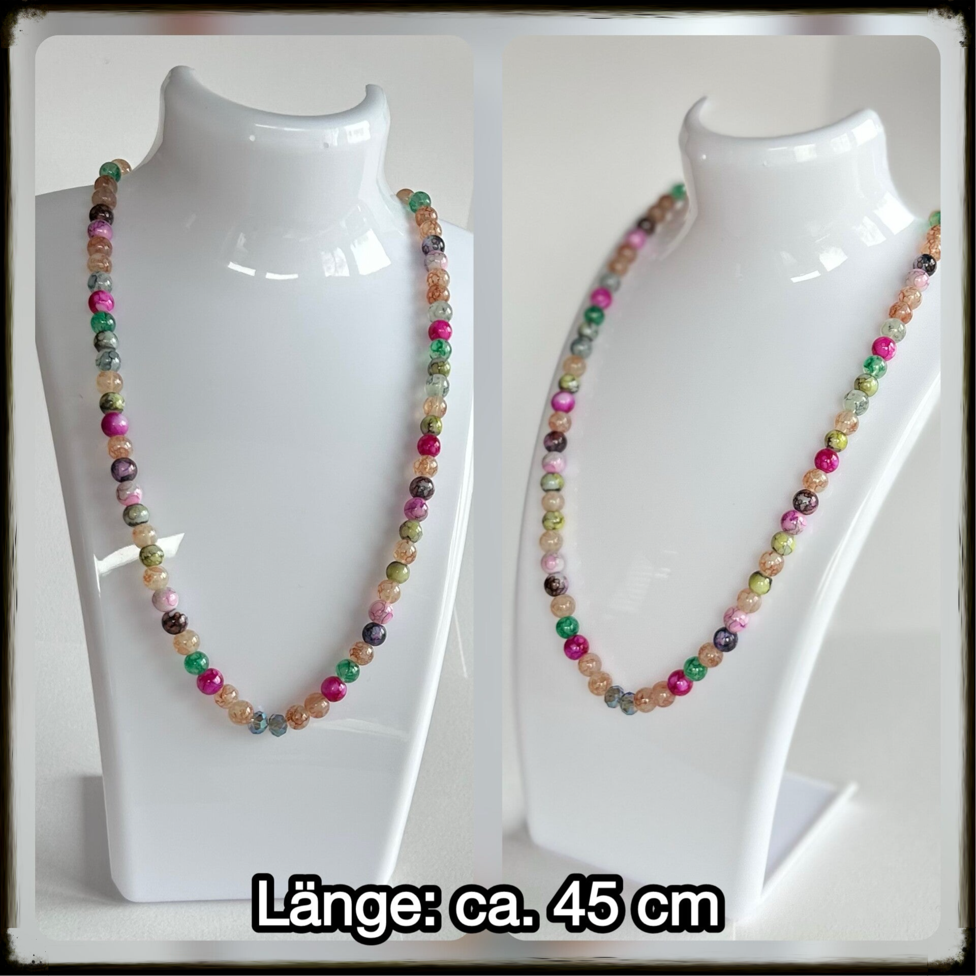 (6)Länge: siehe Bild / Stein-Perlen / Karabiner-Verschluss mit Verländerungskette